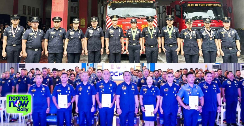 Twelve personnel of the Bureau of Fire Protection-Bacolod and Police Regional Office-Negros Island Region were conferred medals in separate rites on Monday, Nov. 24.