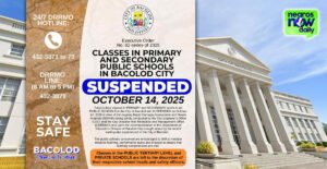 Mayor Greg Gasataya cancelled anew the face-to-face classes today, Oct. 14, but only in primary and secondary public schools in Bacolod.