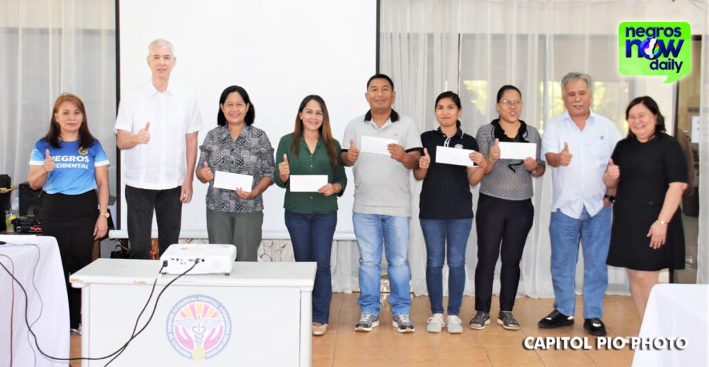 Governor Eugenio Jose Lacson led the awarding of cash incentives, worth P10,000 each, to LGU sanitary inspectors Rose Marie Completo of Kabankalan City, Rowena Macay of Isabela, Frederick Davy Susana of Hinobaan, Jenebabes Calbonera of Pontevedra, and Ma. Leonora Gamboa of Murcia.