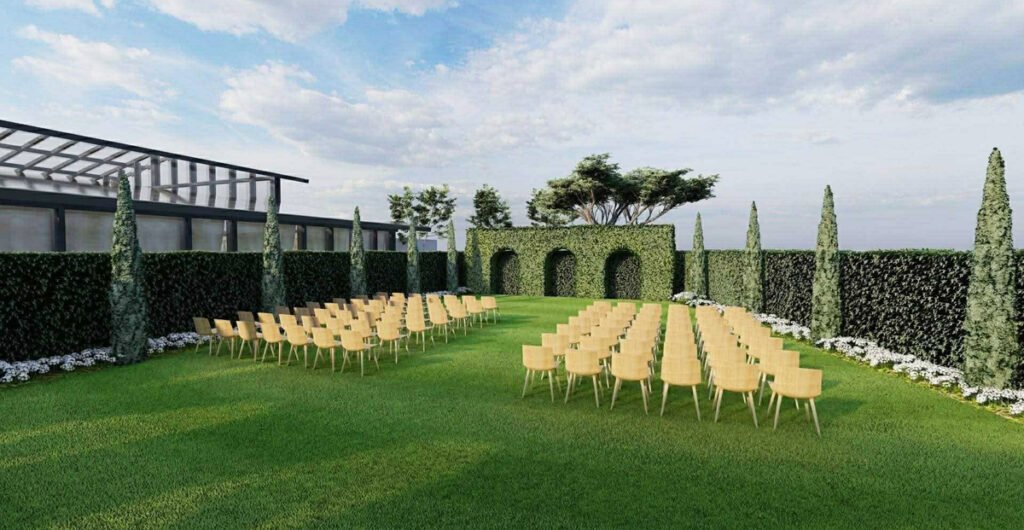 The Green House will feature a main hall and two additional function halls for medium-sized events. It will also include a striking landscaped garden area suitable for ceremonies, cocktail receptions, and photo sessions.