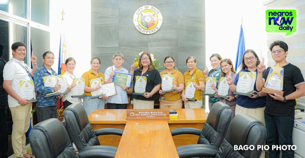 The Bago City Health Office presented to Mayor Mayette Javellana the awards that the city government received at the recent Negrense Pillars of Health awarding ceremony, initiated by the Provincial Health Office.