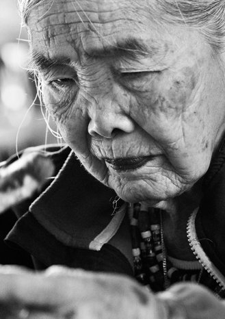 Apo Whang-Od learned batok from her father, who was also a mambabatok. There are stories about her that circulate—how she fell in love once as a teenager, and when the boy died, she never loved again. It is said that a mambabatok who marries or has children cannot fully dedicate herself to the practice.
