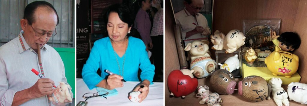 Celebrities who signed her piggy items include Kris Aquino and Manny Pacquiao.