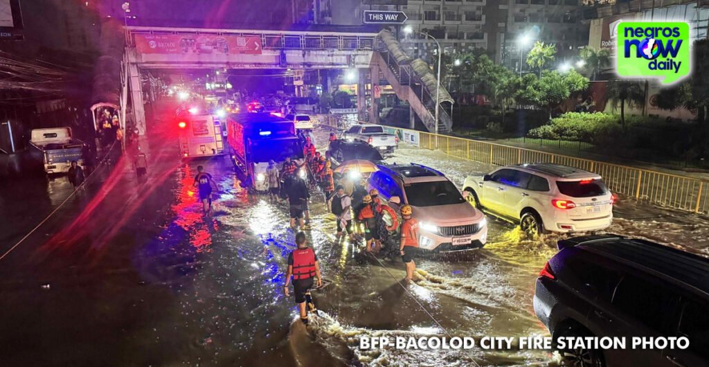 Knee to waist-deep floodwaters were reported along Barangay Mandalagan, particularly in Purok Carvi, along Lacson Street, Araneta-Magsaysay area, corner Alijis-Araneta, and barangays Villamonte, Taculing, and 20.