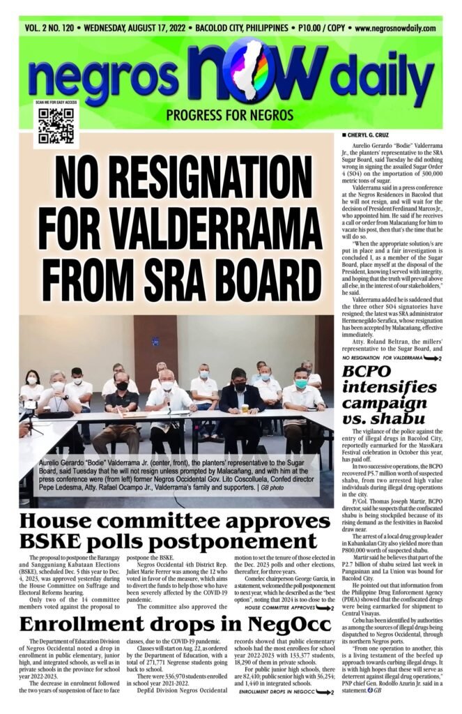 Valderrama said in a press conference at the Negros Residences in Bacolod that he will not resign, and will wait for the decision of President Ferdinand Marcos Jr., who appointed him. He said if he receives a call or order from Malacañang for him to vacate his post, then that’s the time that he will do so.