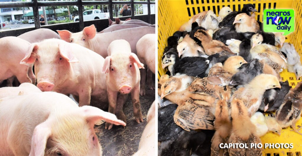 Pigs and free-range chicks were among the livelihood assistance distributed to farmers’ and fisherfolk associations from various towns and cities of Negros Occidental Feb. 25. | Capitol PIO photos
