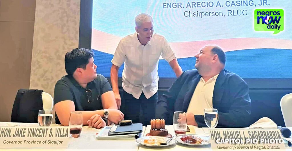 Negros Oriental Gov. Manuel Sagarbarria, Regional Development Council chairman of Negros Island Region, with Negros Occidental Gov. Eugenio Jose Lacson and Siquijor Gov. Jake Vincent Villa (right to left) at the 4th quarter RDC meeting held at Citadines in Bacolod City. | Capitol PIO photo